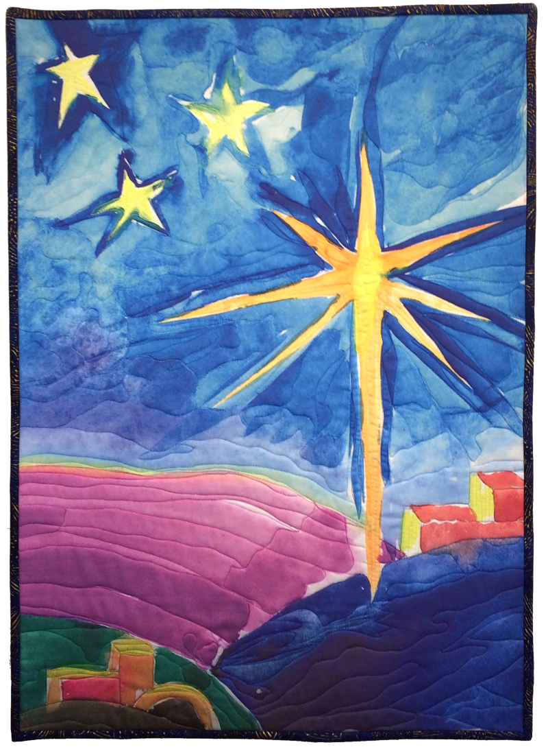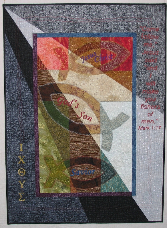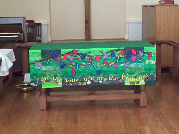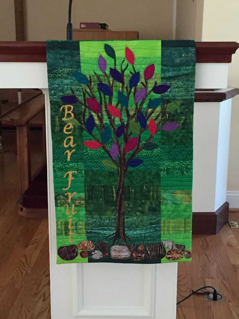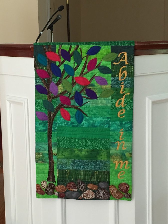 It now hangs in the sanctuary. It is based on one of the panels in Selah and is done in