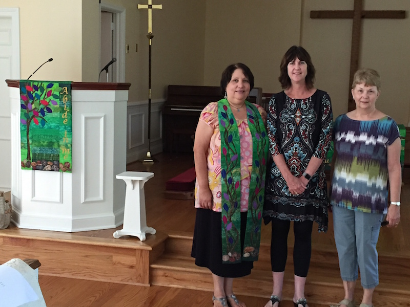 Sanctuary scene with pastor Lydia Rodriguez and parisher Donna Adams |